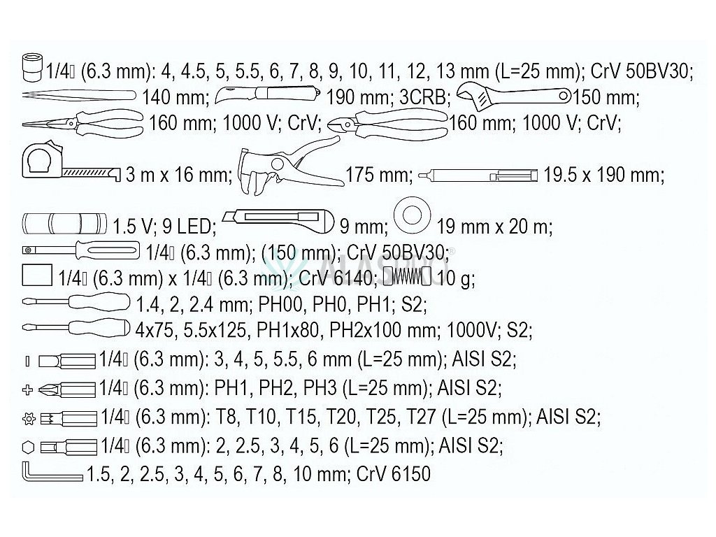 - Izolovaný šroubovák: 4x75, 5.5x125, PH1x80, PH2x100mm (1000V)