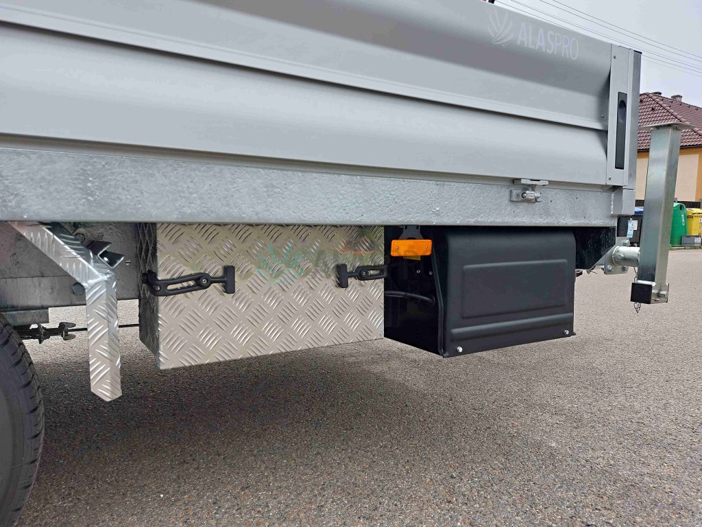 - v rámu přívěsu schránky pro uložení alu nájezdů vč. krytu a zajištění proti vysunutí