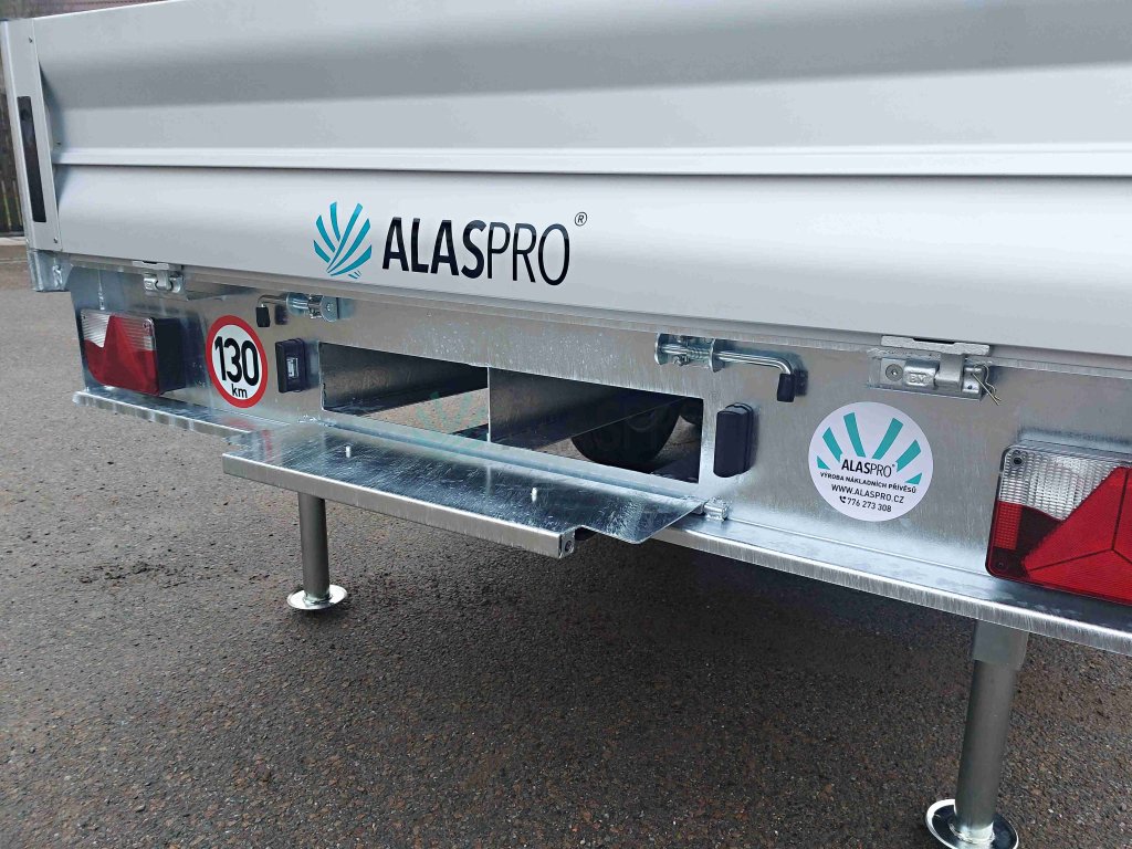 - v rámu přívěsu schránky pro uložení alu nájezdů vč. krytu a zajištění proti vysunutí