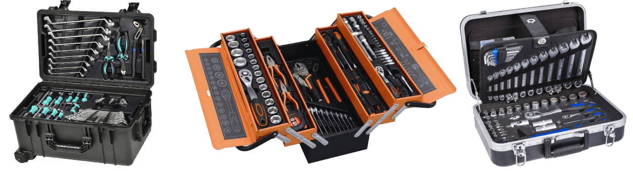 Sada nářadí v kufru s Golou 1/4", 3/8" a 1/2", 215 dílů